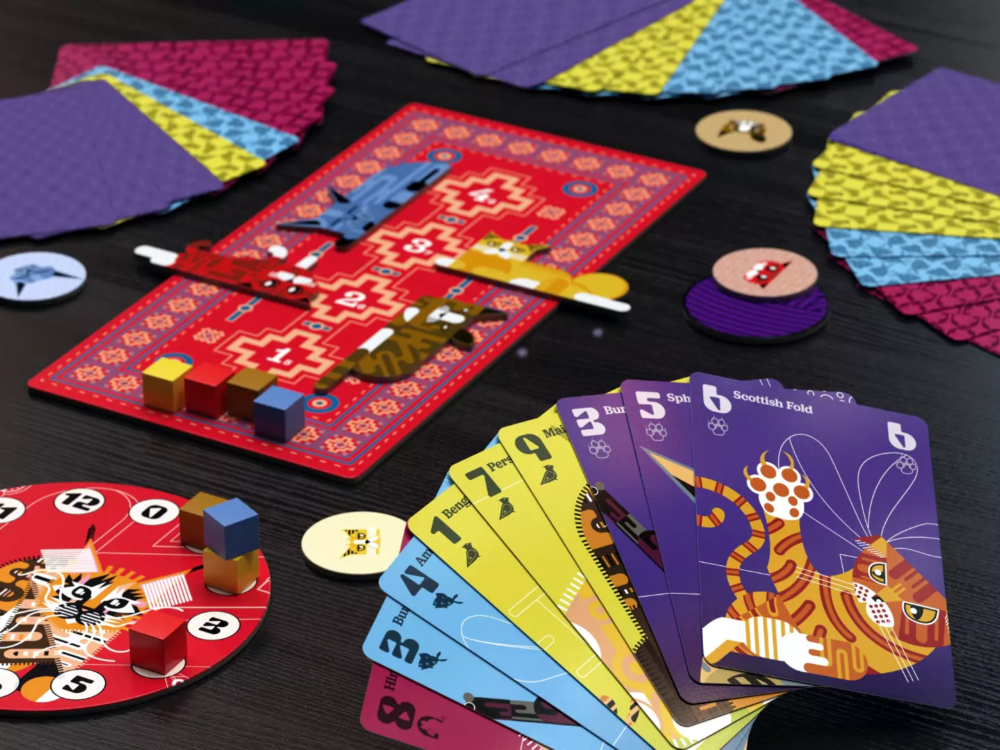 9 Lives is a trick-taking game where players compete to earn the most points. The game uses 3-4 suits which show the color of the cards on the rear.