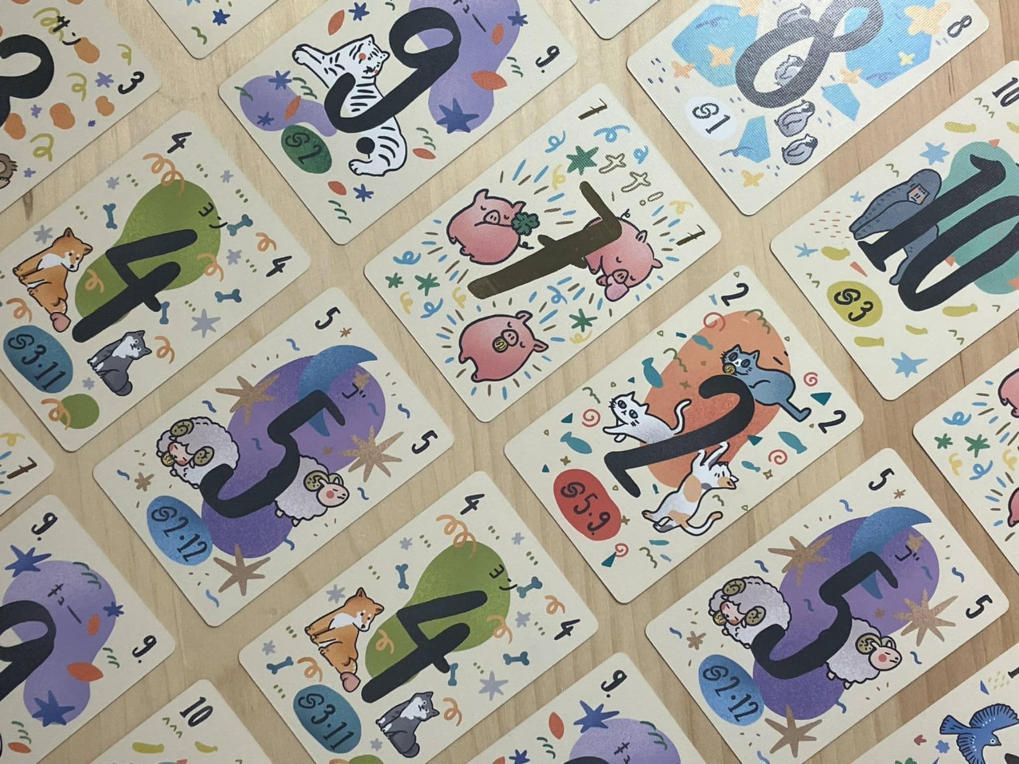 The deck consists of 36 cards, numbered 1-12 three times. Players receive some cards in hand, which they are required to sort from low to high, and the remaining cards are placed face down on the table.