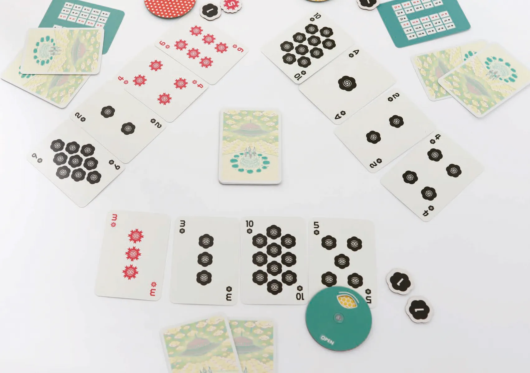OPEN is a climbing and shedding game in which each person plays with four of their six cards face up on the table.