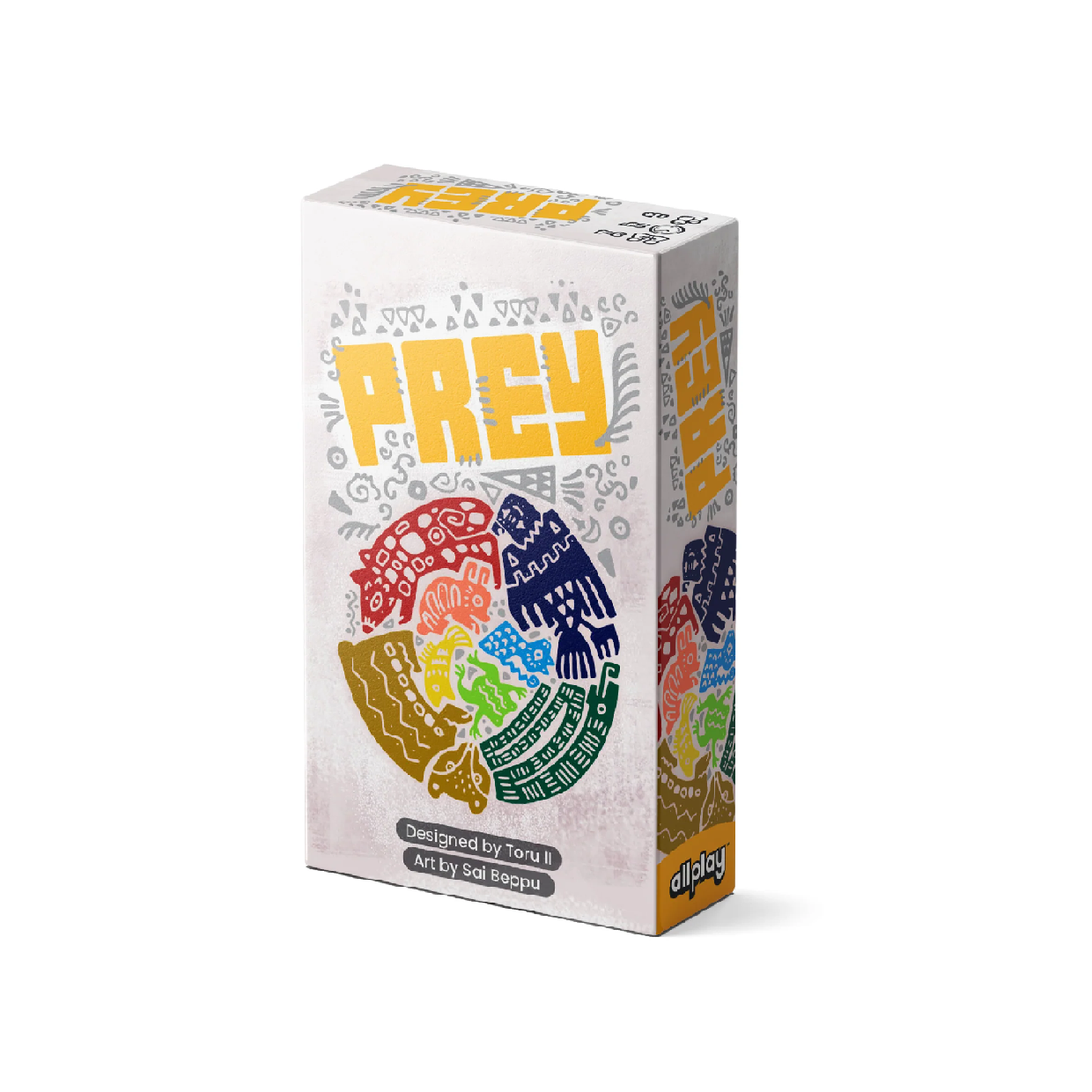 Prey is a 12-trick trick-taking game where 3-4 players play the first six tricks with one side of numbers (predators), then FLIP their cards over to play the final six (prey). You must follow suit if you can.