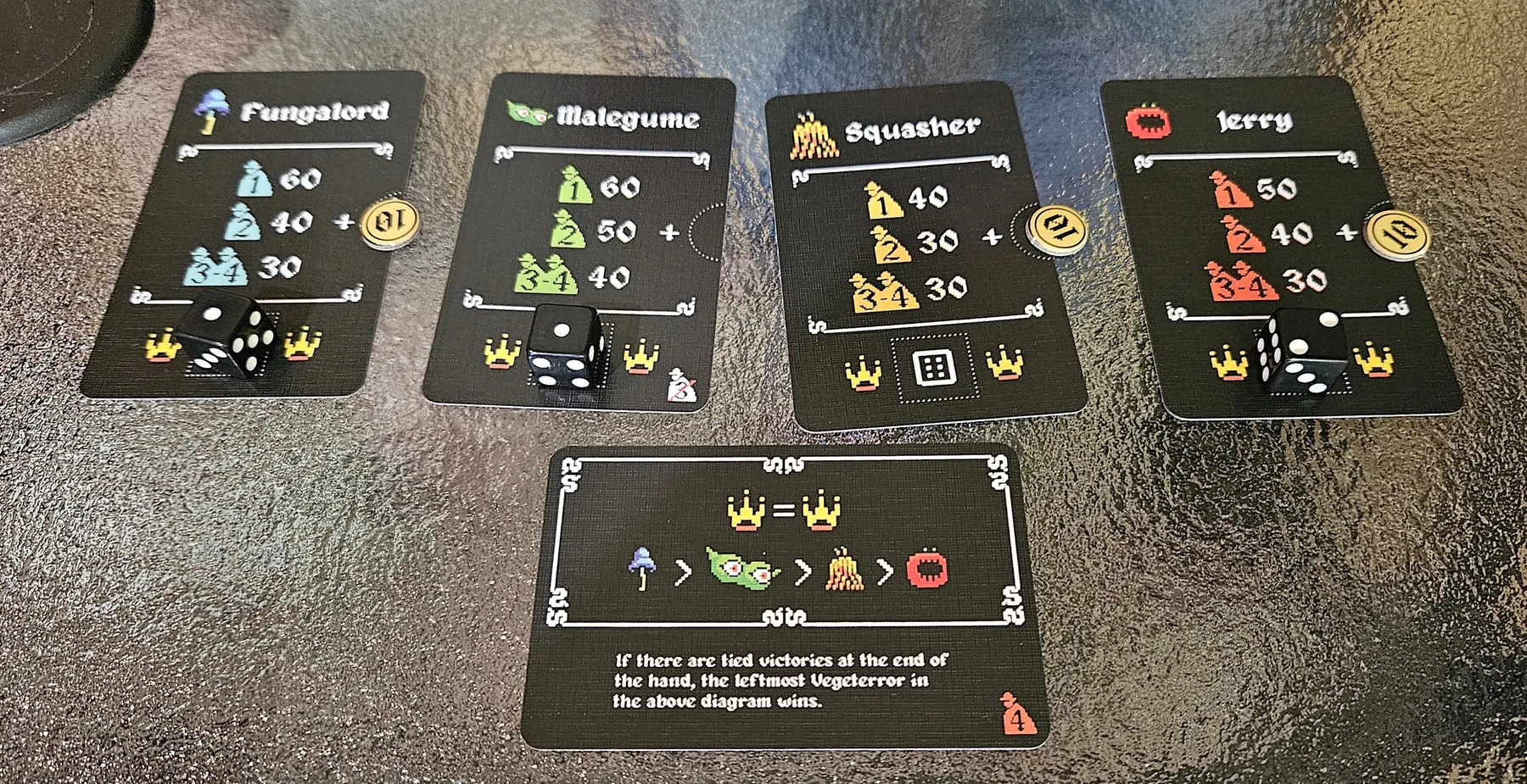 A must not follow trick taker where the monsters (suits) battle it out. In this game it’s not the players that win tricks, the monsters do.
